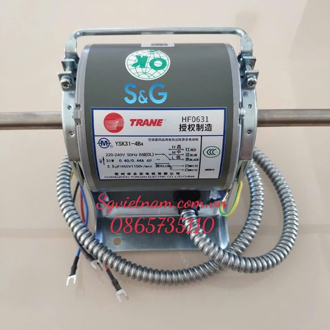 YSK16_20_22_25_26_30_31_32_37_48_60_76-4DB4_B4_M4_S4_H4_A3_CG3_4 fan motors for TRANE air conditioner. This kind of AC Fan Motors are designed for either vertical shaft-up or shaft-down applications. Shell and end shields of this PSC fan motors are enclosed for water protection. In each end shield,there is a weep hole, to allow condensate to drain. All of these ac fan motors are suitable for air conditioning or heat pump applications. This motor connects easily to the fan controller via a standard plug. For 4-speed applications.